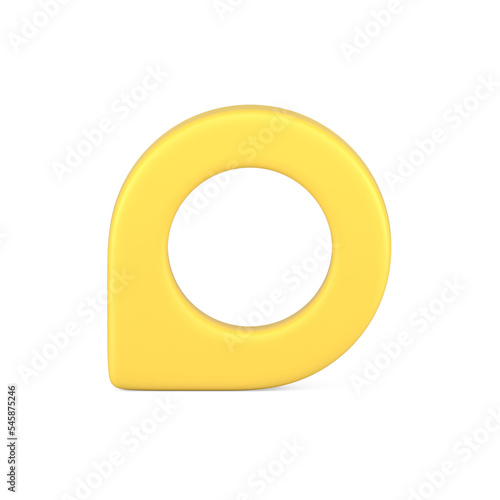 Yellow diagonally placed glossy map pin with hole 3d icon mockup realistic