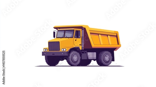 Yellow dump truck on white background, construction site, transportation
