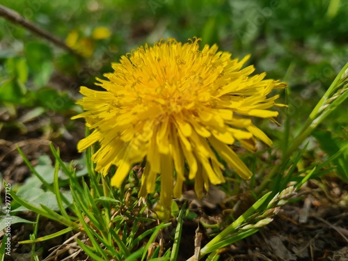 flower, blowball, yellow, nature, spring, grass, plant, green, macro, summer, flower, blossom, flora, meadow, bloom, garden, beauty, wild plant, closeup, beautiful, field, blooming, single, floral