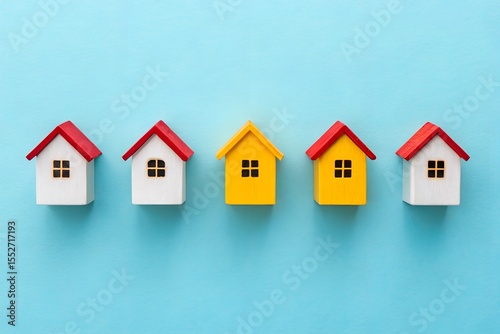 Yellow House Standing Out in a Row Representing Real Estate Selection and Ideal Home Choice