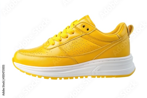 yellow, leather, sneaker, shoe, white, sole, lace, footwear, fashion, casual attire, sporty, comfortable, stylish, trendy, modern, classic, athletic, running, walking, street, wear, size, design, brand, model, style, apparel, clothing, man, woman, unisex, new, clean, isolated, background, product, side, view, angle, detail, texture, pattern, stitching, eyelet