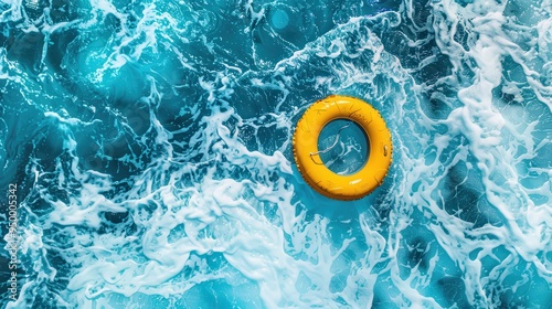 lifebuoy, water, ocean, sea, foam, blue, yellow, floating, ring, circle, safety, rescue, summer, beach, tropical, vacation, holiday, travel, nautical, maritime, aquatic, water sport, swimming, relaxation, fun, sun, sky, horizon, wave, current, surface, texture, pattern, background, design, abstract, natural, vibrant, colours