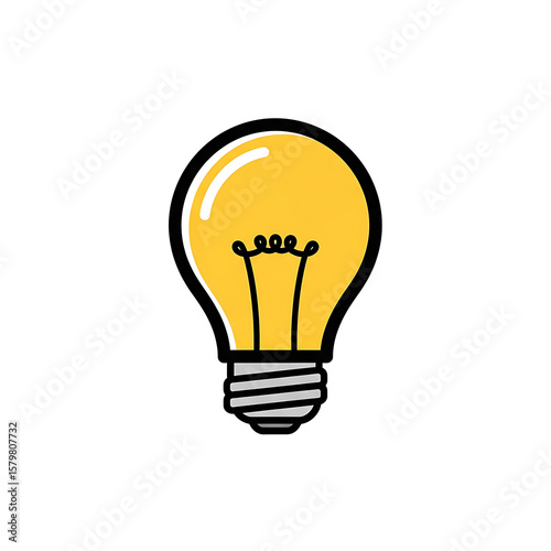 bulb, light, to illuminate, cartoon, simple, bright, clean, white, isolated, icon, idea, concept, solution, inspiration, energy, electricity, footed, striation, black, yellow, symbol, object, design, lamp, glowing, outline, graphic, minimalist, positive, clear, illuminating, thinking, innovation, invention, representation