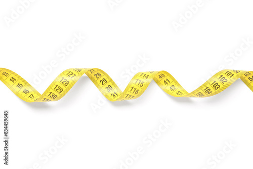 Yellow measuring tape on white background