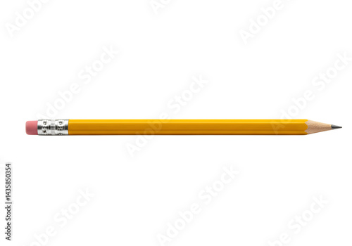 Yellow pencil with eraser on a simple background, writing instrument tool