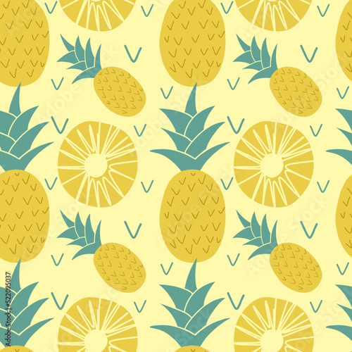 pattern, seamless, fruit, pineapple, floral, plant, illustration, nature, vector, decoration, wallpaper, leaf, texture, summer, art
