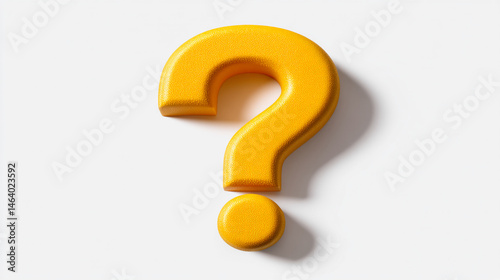 Yellow question mark, textured surface, against white background, symbolizing inquiry, uncertainty, or FAQ concept