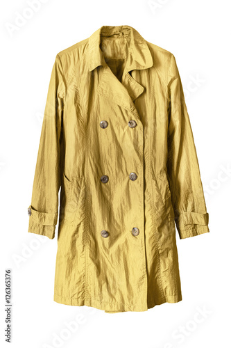 trench, coat, cloak, raincoat, suit, garment, clothes, clothing, dressing, wear, clothes rack, shopping, fashion, style, yellow, gold, colours, object, studio, isolated, on white, background, fashionable, stylish, lifestyle, casual attire, glamour, clothes, fabric