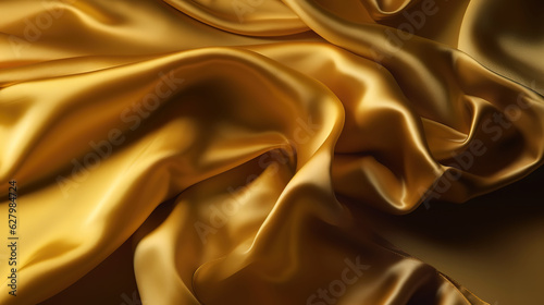 Yellow silk satin, Draped fabric, Golden color, Luxury background. Generative Ai