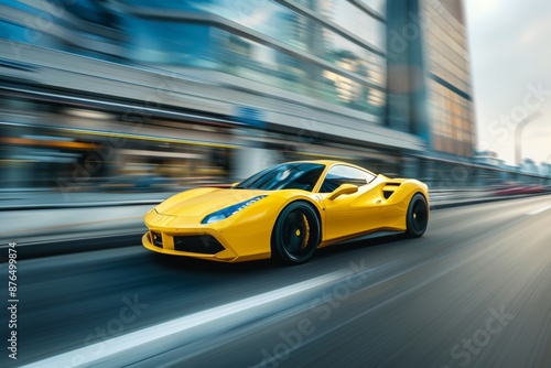 Yellow sports car in swift motion, speeding on the highway road with agile movements