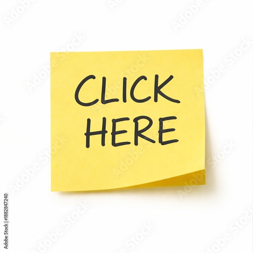 click, here, yellow, sticky, note, with, text, simple, inviting, action, response, message, paper, reminder, adhesive, office, stationery, communication, emphasize, idea, concept, symbol, marker, label, prompt, signal, clean, blank, design, minimal, background, creative, inspiration, writing, note, casual attire, modern, sharpened, visualisation, script, informal, easy