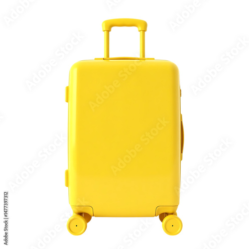 Yellow suitcase travel baggage closeup on white background on transparent background