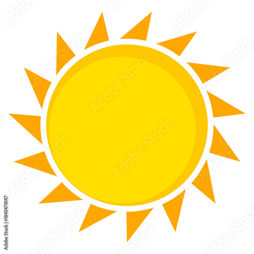 Yellow sun illustration. Abstract design of a shining sun in a flat style.