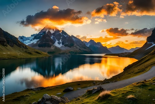 lake, mountain, landscape, water, sky, nature, mountain, cloud, snow, travel, forest, mirror, cloud, norge, panorama, morning, scenic, summer, view, blue, green, sunset, park