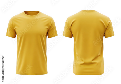 Yellow t shirt front and back isolated on transparent background