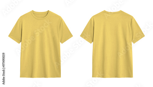 Yellow T Shirt Mockup, Front and Back View Isolated on White Background for Fashion Design and Branding Presentation