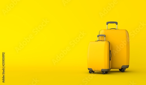 Yellow travel suitcase against a yellow background. 3D Rendering