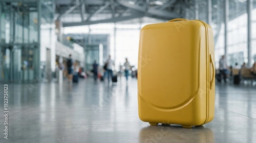 suitcase, yellow, travel, aerodrome, terminal, waiting, transportation, baggage, journey, trip, travel bag, vacation, modern, business, departure, vacationing, tour tourism, design, sleek, adventure, exploration, holiday, people, floor, sunny, movement, carry-on, excitement, traveler, planning, relaxation, boarding, check-in, casual attire, fun, leisure, wanderlust, setting, bright