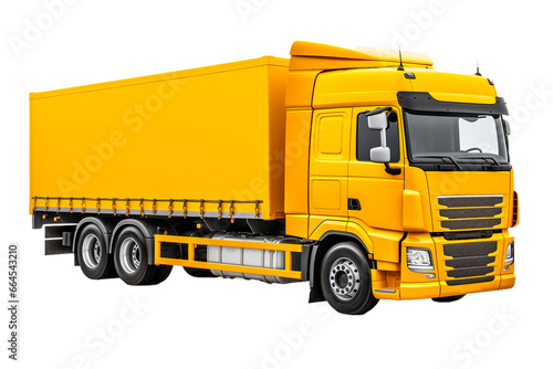 Yellow Truck with container, cargo transportation concept, isolated on transparent background