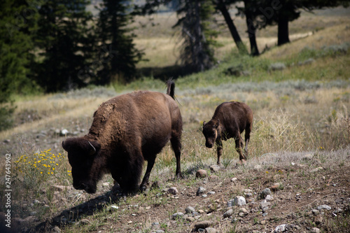 bison, buffalo, animal, mammal, wildlife, nature, inhospitable, grass, toroid, grass, coffee, cow, field, horn, crowd, calf, fur, park, yellowstone, outdoors, wyoming, farm
