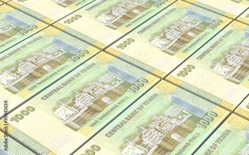 Yemeni rials bills stacked background. Computer generated 3D photo rendering.
