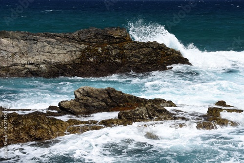 sea, coast, ocean, beach, water, coastline, wave, landscape, rock, rock, wave, nature, shore, blue, sky, cliff, seascape, surf, california, stone, rocky, summer, travel, island