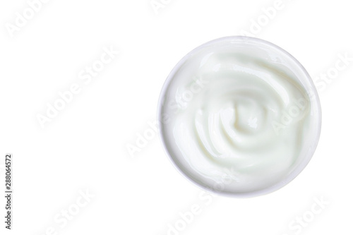 Yogurt white put in a glass put isolated white background with clipping path from top view.