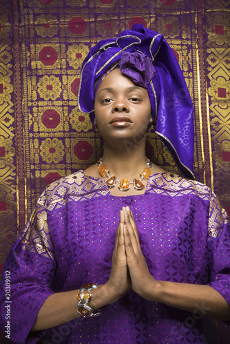 accessory, adult, african, african american, beautiful, black, calm, clothing, colourful, culture, design, dress, fashion, female, headdress, jewellery, leopard print, meditation, 1, pattern, peaceful, pensive, person, portrait, prayer, praying, pretty, purple, quiet, relaxation, relaxed, religion, foulard, serene people, serious, spirituality, standing, style, three quarter, tradition, calmness, tribal, 20s, vertical, woman
