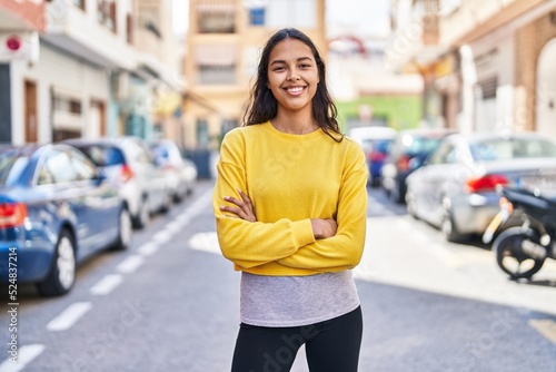 Young african american woman smiling confident standing with arms crossed gesture at street