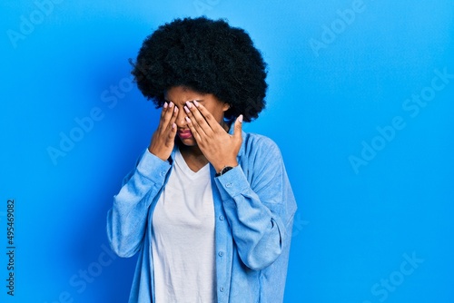 Young african american woman wearing casual clothes rubbing eyes for fatigue and headache, sleepy and tired expression. vision problem