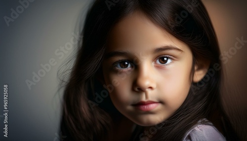 young American girl with long curly hair, smiling brightly. Her warm expression and natural beauty capture the innocence and joy of childhood