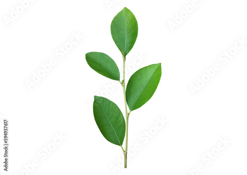 Young and fresh green top of ficus benjamina leaf isolated on white background with clipping paths.