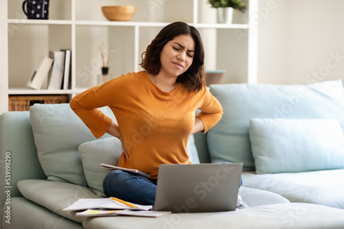 back, pain, woman, lower, cramp, female, medicals, kidney, sick, inflammation, uncomfortable, work, backache, couch, sofa, disease, domestic, rheumatism, vertebra, indoor, suffering, hand, discomfort, home, lumbar, medicine, injury, health, bruised, sitting, painful, ache, symptom, disease, young, care, spine, freelancer, middle eastern, attractive, arab, student, study, education, online, laptop, computer, remote