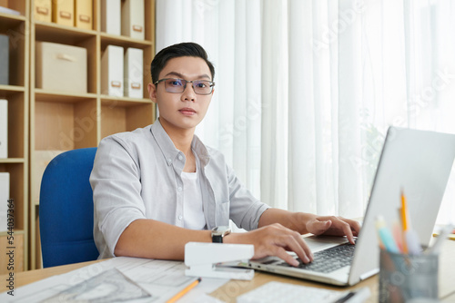 owner, office, architect, man, laptop, working, computer, businessperson, businessman, office, technology, portrait, goggles, typing, online, occupation, business, eyeglass, cyberspace, table, desk, creativity, professional occupation, lifestyle, concentration, wireless technology, manager, confidence, communication, expertise, planning, blueprint, document, entrepreneur, professional, asian, corporate