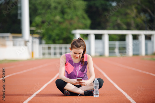 woman, fitness, running, resting, physical exercise, runner, girl, sport, run, water, young, female, exercise, jogging, after, training, fit, person, athlete, lifestyle, health, healthy, break, people, beautiful, jogger, phone, happy, drinking, bottle, music, summer, sporty, sleepy, sitting, message, active, asia, asian woman, track, stadium, cyberspace, communication