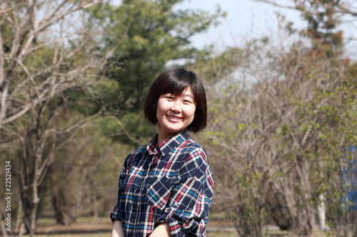 asian ethnicity, cheerful, smiling, green, laughing, leaf, spring, portrait, well-being, real people, copy space, woman, happiness, tree, human face, one person, park, freshness, vitality, 20s, nature, people, beauty, beautiful, female, outdoors, joy, cute, bush, content, short hair, black hair, day