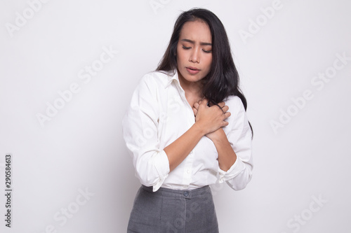 Young Asian woman got chest pain.