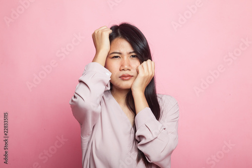 ache, asian, beautiful, disease, examine, female, fever, flu, girl, cephalalgia, health, health care, bruised, lady, pain, painful, person, portrait, problem, studio, suffer, trouble, unhappy, pink, woman, young