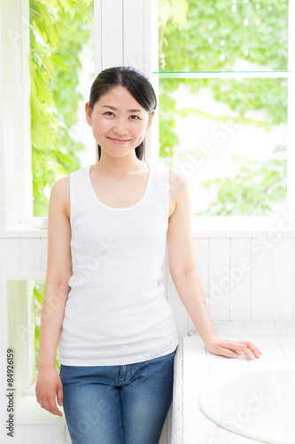woman, people, comfort station, portrait, make-up, make-up, beauty, cosmetic, skin, bare skin, skincare, relax, lifestyle, live, beauty, smile, alone, 30s, homemaker, young, clean, appealing, clean, green, nature, light, japanese, asian, chinese