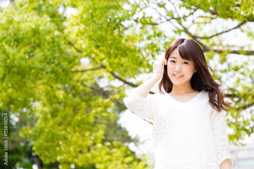 woman, people, park, green, nature, smile, open air, relax, alone, lifestyle, eco, beauty, clean, appealing, japanese, chinese, asian