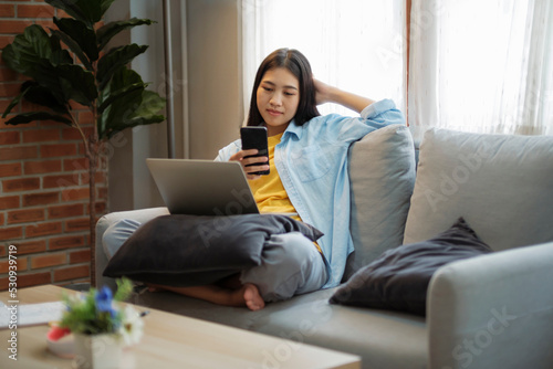 relaxation, smartphone, mobile, couch, app, browsing, mobile phone, education, cyberspace, online, mobile phone, home, smiling, woman, rest, message, activity, application, connection, comfortable, enjoy, laptop, living room, using, smart, looking, lying, confidence, cosy, entertainment, emotion, electronic, isolation, laughing, positivity, play, recreation, leisure, lifestyle, living, reading, screen, surfing, watching, touch, sitting, sofa, room