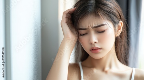 young, asian, woman, standing, window, indoor, light, thoughtful, emotion, natural, girl, serious, expression, portrait, beauty, calm, peaceful, lifestyle, alone, face, closeup, sorrowful, feeling, hair, skin, casual attire, elegant, serene, meditation, looking, vision, moment, youth, soft, gentle, delicate, mood, daydreaming, quiet, gaze, femininity, calmness, calmness, introspection, vulnerability