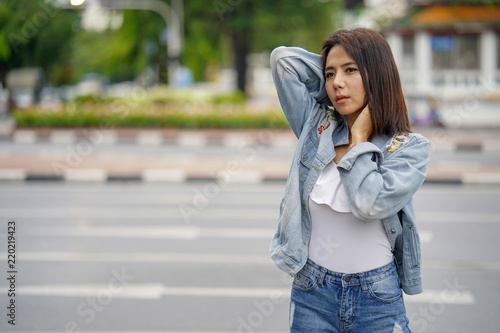 Young asian woman traveling to landmark in Bangkok Thailand.