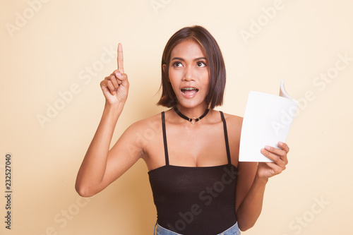 Young Asian woman with a book have an idea.