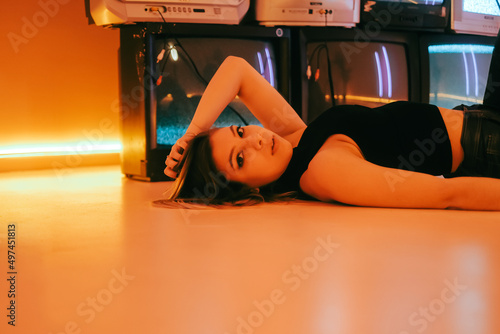 woman, beauty, portrait, old-fashioned, dancer, fashion, dance, model, posing, seductive, television, vintage, attractive, beautiful, brunette, caucasian, colourful, concept, display, entertainment, fashionable, female, floor, futuristic, hipster, indoor, lady, look, lying, modern, neon, night, old, outfit, person, pose, retro, screen, sensual, sensuality, set, studio, style, stylish, technology, television, trendy