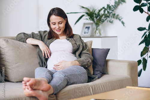 pregnant, woman, sofa, indoor, sitting, female, lifestyle, adult, smiling, living room, people, relaxation, mother, home interior, young adult, anticipation, happiness, cheerful, one person, casual clothes, beautiful, eltern, comfortable, beauty, new life, domestic life, brown hair, missy, holding, cute, love, house, portrait, joy, avocation, resting, day, adults only, apartment, enjoyment