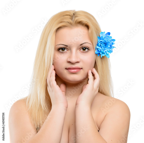beautiful, girl, woman, beauty, young, fashion, flower, model, portrait, female, coiffure, face, white, pretty, elegance, glamour, make-up, attractive, adult, spring, hair, care, romantic, floral, lady, sensuality, cute, femininity, summer, sensual, person, happy, posing, caucasian, skin, head, honed, lip, lovely, background, style, vogue, purity, natural, blond, youth, cosmetology, concept, nature, isolated