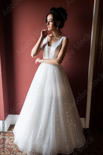 bride, dress, wedding, beauty, woman, beautiful, fashion, young, white, gown, model, bridal, portrait, elegance, people, person, hair, happy, glamour, studio, marriage, style, 1, cute, isolated, antique, interior, female, girl, adult, caucasian, luxury, elegant, posing