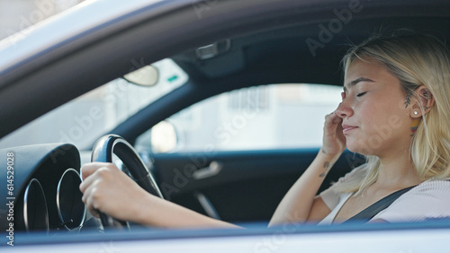 young, hispanic, woman, female, person, portrait, adult, beautiful, attractive, blond, lifestyle, expression, sunlight, fashion, casual attire, car, vehicle, driver, transport, insurance, auto, automobile, drive, driving, sitting, seat, belt, trip, travel, journey, road, stress, stressed, traffic, accident, frustration, angry, unhappy, anxiety, problem, street, town, city, urban, outdoors, outside, exterior