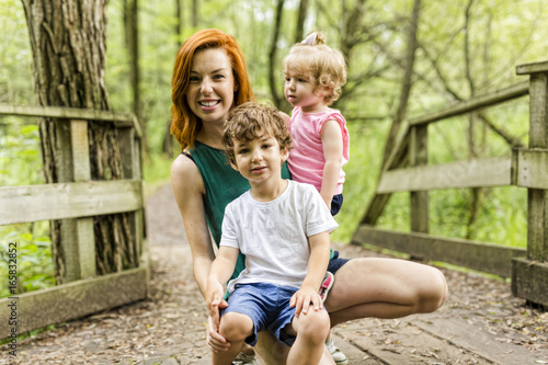 Young beautiful mother her little toddler daughter and son
